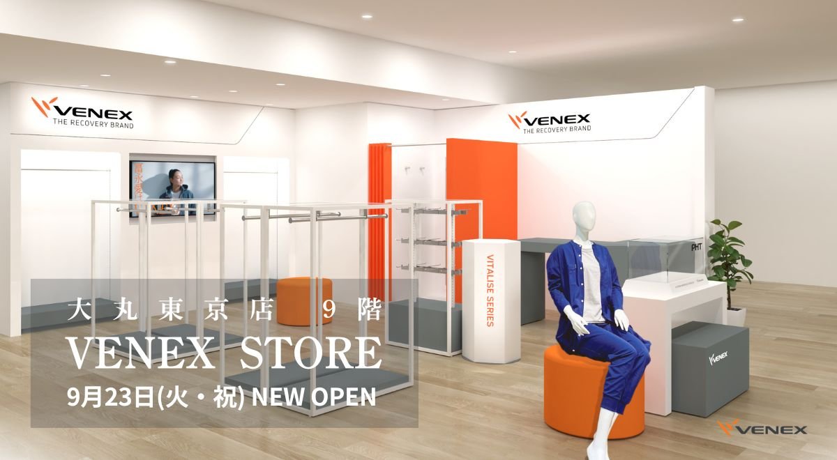 このたび、常設店「大丸東京店 9階 VENEX STORE」を9月23日(火・祝)に新オープンいたします。オープンを記念して、期間・数量限定で、11,000円(税込)以上お買い上げの方に『ノベルティアイマスク』を、22,000円(税込)以上をお買い上げの方に『ネックゲイター』をプレゼントいたします。